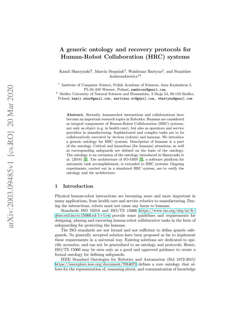 A generic ontology and recovery protocols for Human-Robot Collaboration