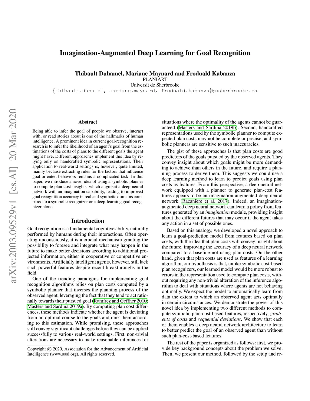 Being able to infer the goal of people we observe, interact with, or read stories about is one of the hallmarks of human intelligence. A prominent idea in current goal-recognition research is to infer the likelihood of an agent's goal from the estimations of the costs of plans to the different goals the agent might have. Different approaches implement this idea by relying only on handcrafted symbolic representations. Their application to real-world settings is, however, quite limited, mainly because extracting rules for the factors that influence goal-oriented behaviors remains a complicated task. In this paper, we introduce a novel idea of using a symbolic planner to compute plan-cost insights, which augment a deep neural network with an imagination capability, leading to improved goal recognition accuracy in real and synthetic domains compared to a symbolic recognizer or a deep-learning goal recognizer alone.