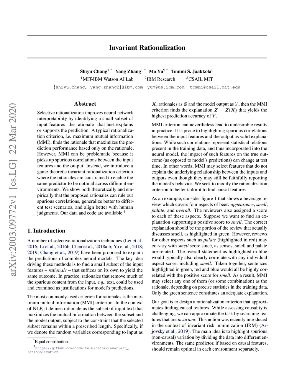 Selective rationalization improves neural network interpretability by identifying a small subset of input features -- the rationale -- that best explains or supports the prediction. A typical rationalization criterion, i.e. maximum mutual information (MMI), finds the rationale that maximizes the prediction performance based only on the rationale. However, MMI can be problematic because it picks up spurious correlations between the input features and the output. Instead, we introduce a game-theoretic invariant rationalization criterion where the rationales are constrained to enable the same predictor to be optimal across different environments. We show both theoretically and empirically that the proposed rationales can rule out spurious correlations, generalize better to different test scenarios, and align better with human judgments. Our data and code are available.