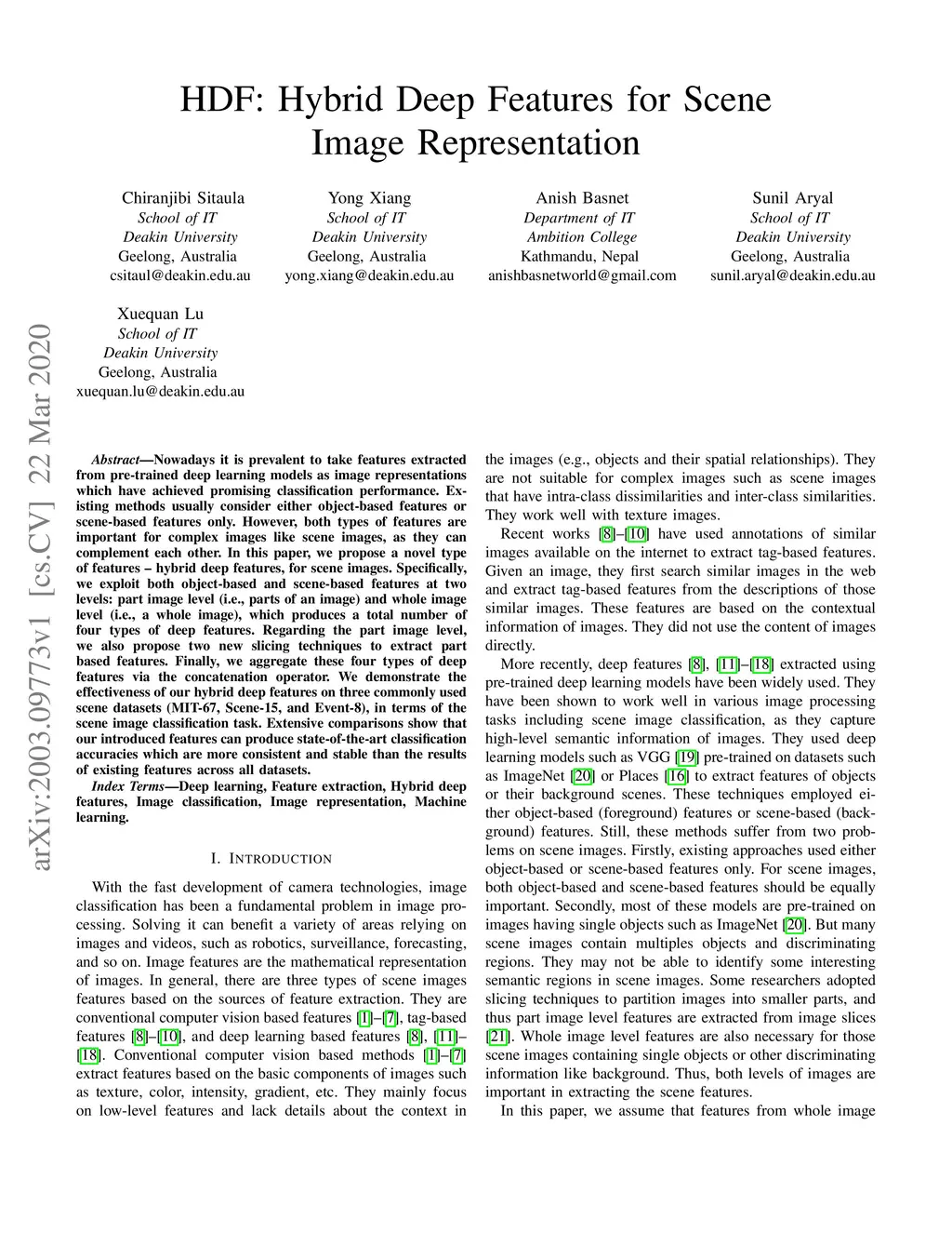 HDF: Hybrid Deep Features for Scene Image Representation