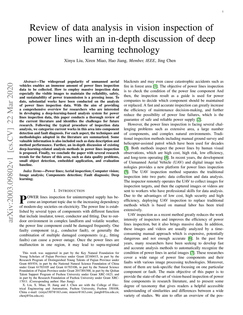 Review of data analysis in vision inspection of power lines with an