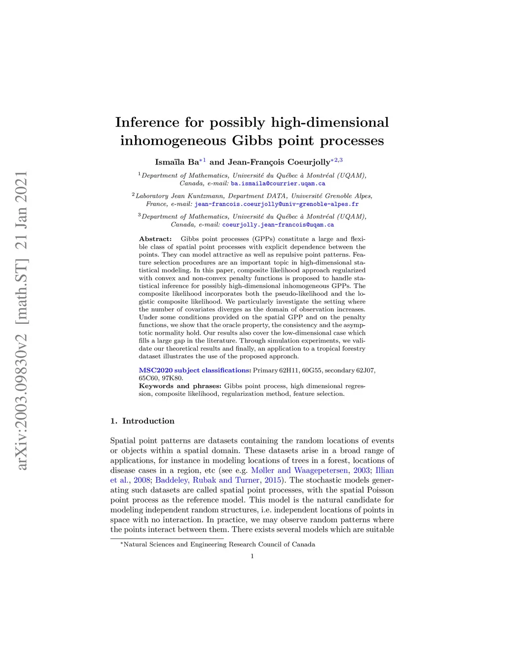 Inference for possibly high-dimensional inhomogeneous Gibbs point
