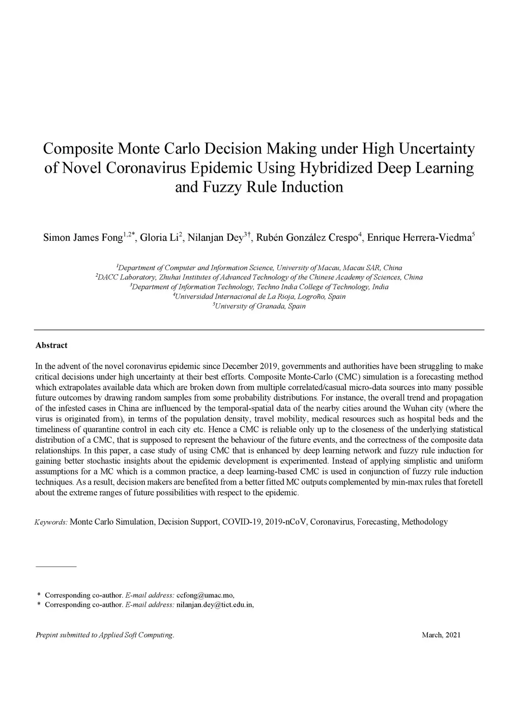 Coronavirus Epidemic Using Hybridized Deep Learning and Fuzzy Rule Induction