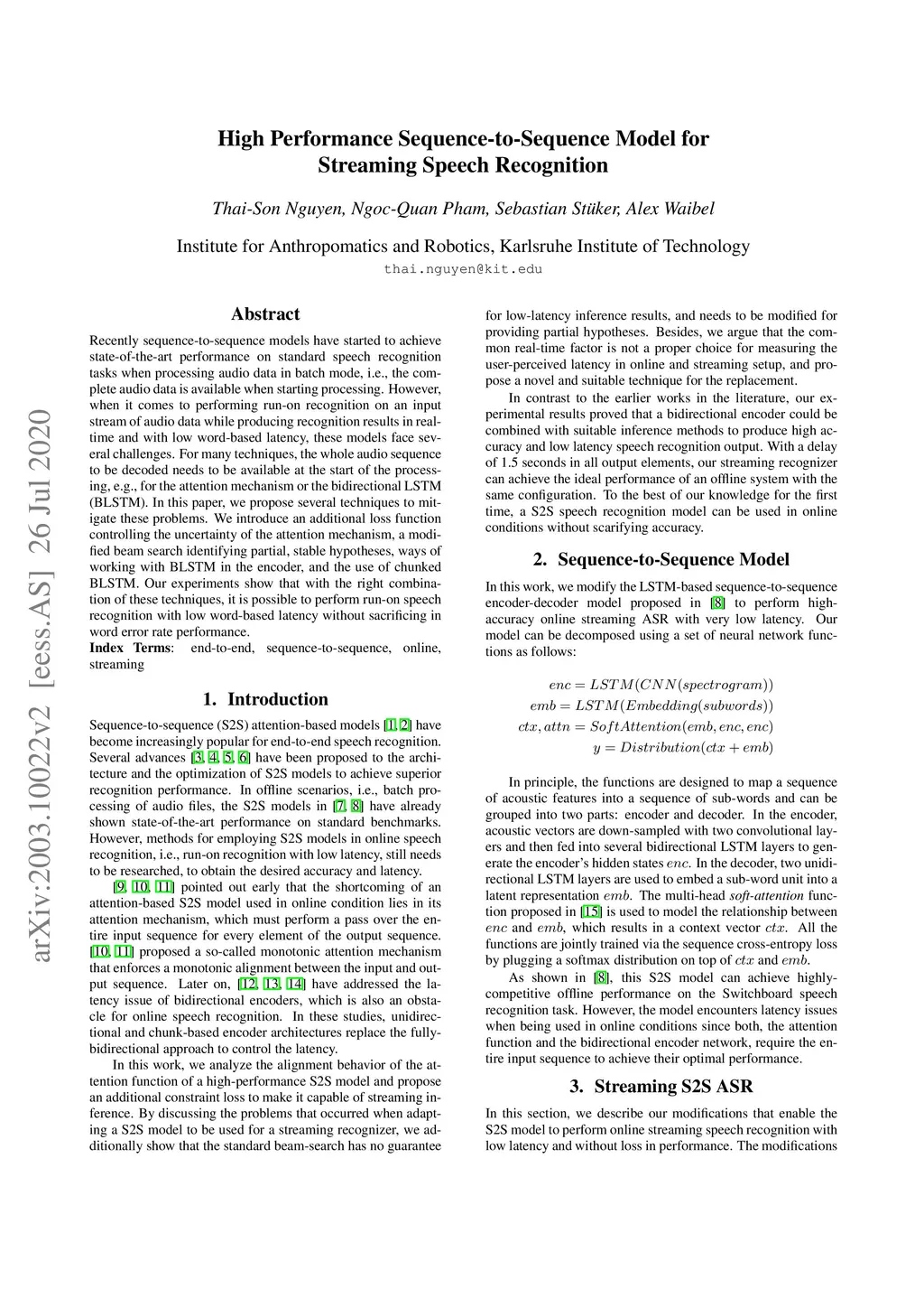 High Performance Sequence-to-Sequence Model for Streaming Speech
