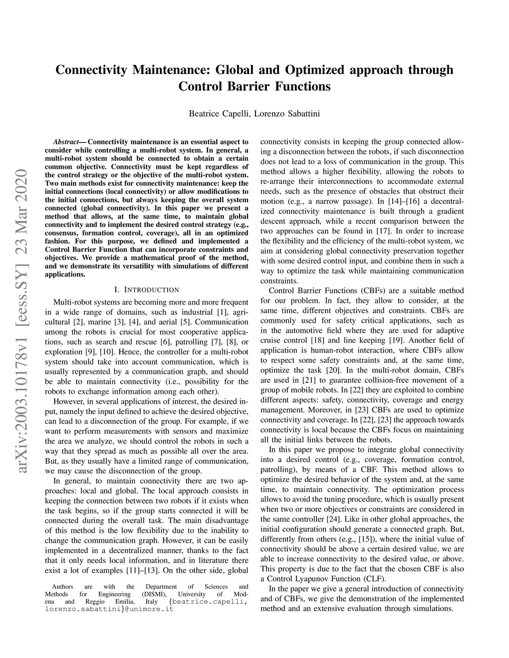Connectivity maintenance is an essential aspect to consider while controlling a multi-robot system. In general, a multi-robot system should be connected to obtain a certain common objective. Connectivity must be kept regardless of the control strategy or the objective of the multi-robot system. Two main methods exist for connectivity maintenance: keep the initial connections (local connectivity) or allow modifications to the initial connections, but always keeping the overall system connected (global connectivity). In this paper we present a method that allows, at the same time, to maintain global connectivity and to implement the desired control strategy (e.g., consensus, formation control, coverage), all in an optimized fashion. For this purpose, we defined and implemented a Control Barrier Function that can incorporate constraints and objectives. We provide a mathematical proof of the method, and we demonstrate its versatility with simulations of different applications.