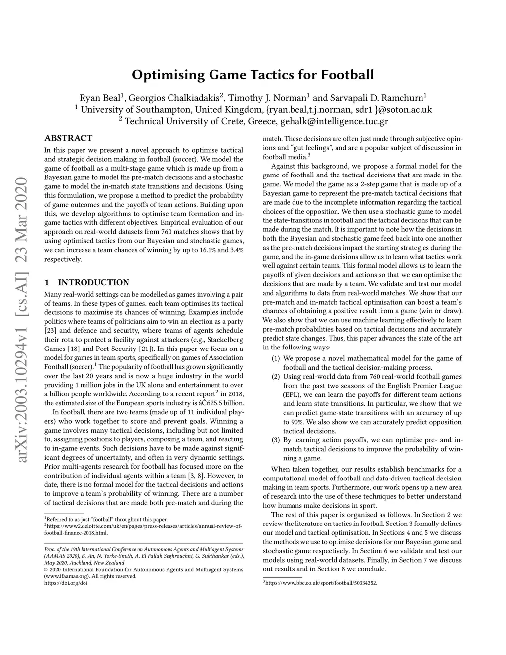 Optimising Game Tactics for Football