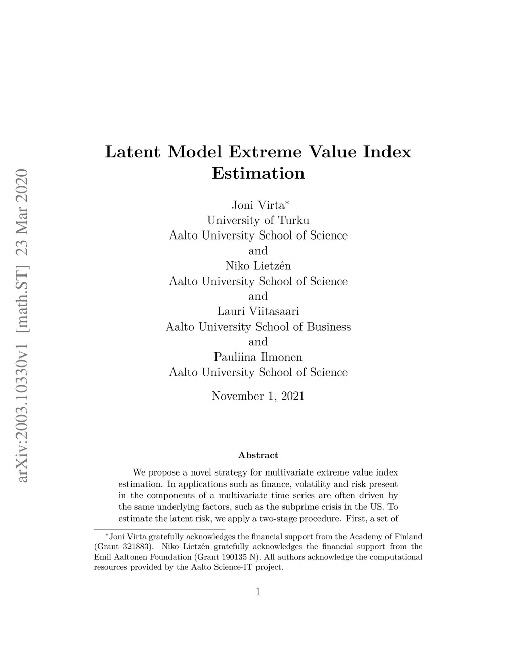 Latent Model Extreme Value Index Estimation