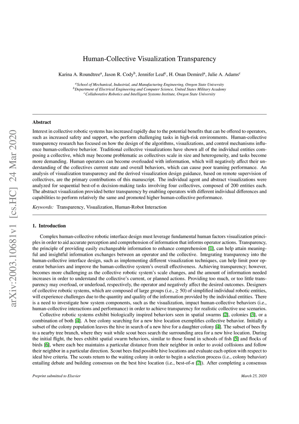 Interest in collective robotic systems has increased rapidly due to the potential benefits that can be offered to operators, such as increased safety and support, who perform challenging tasks in high-risk environments. Human-collective transparency research has focused on how the design of the algorithms, visualizations, and control mechanisms influence human-collective behavior. Traditional collective visualizations have shown all of the individual entities composing a collective, which may become problematic as collectives scale in size and heterogeneity, and tasks become more demanding. Human operators can become overloaded with information, which will negatively affect their understanding of the collective's current state and overall behaviors, which can cause poor teaming performance. An analysis of visualization transparency and the derived visualization design guidance, based on remote supervision of collectives, are the primary contributions of this manuscript. The individual agent and abstract visualizations were analyzed for sequential best-of-n decision-making tasks involving four collectives, composed of 200 entities each. The abstract visualization provided better transparency by enabling operators with different individual differences and capabilities to perform relatively the same and promoted higher human-collective performance.