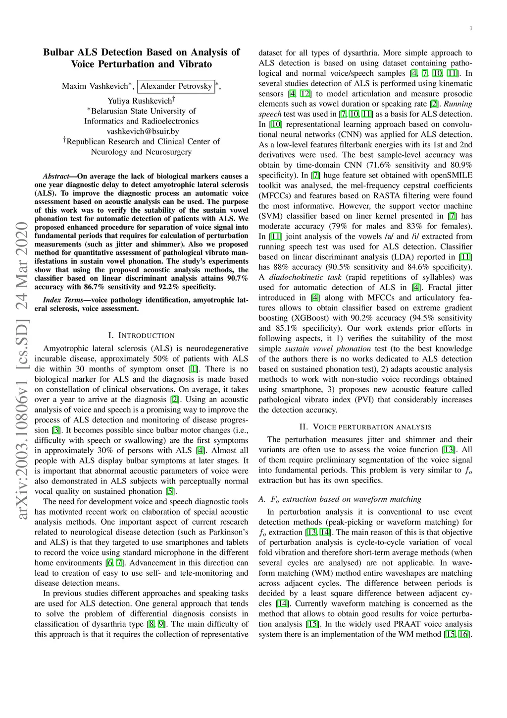 Bulbar ALS Detection Based on Analysis of Voice Perturbation and Vibrato