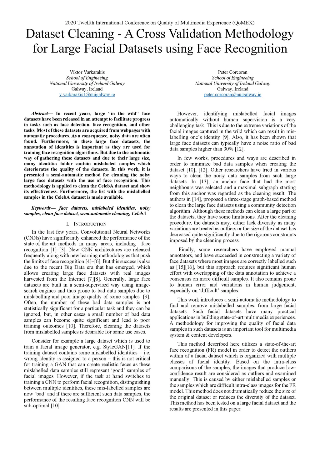 Dataset Cleaning -- A Cross Validation Methodology for Large Facial