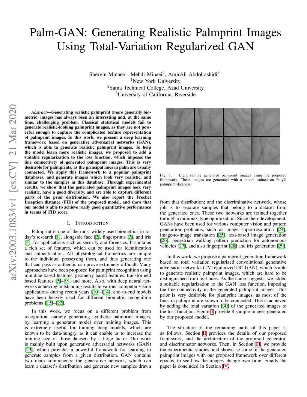 Palm-GAN: Generating Realistic Palmprint Images Using Total-Variation