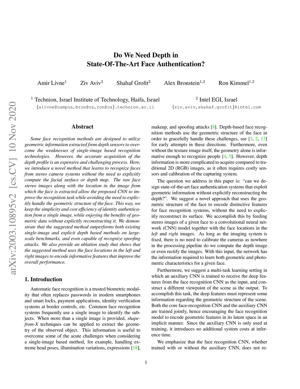 Some face recognition methods are designed to utilize geometric information extracted from depth sensors to overcome the weaknesses of single-image based recognition technologies. However, the accurate acquisition of the depth profile is an expensive and challenging process. Here, we introduce a novel method that learns to recognize faces from stereo camera systems without the need to explicitly compute the facial surface or depth map. The raw face stereo images along with the location in the image from which the face is extracted allow the proposed CNN to improve the recognition task while avoiding the need to explicitly handle the geometric structure of the face. This way, we keep the simplicity and cost efficiency of identity authentication from a single image, while enjoying the benefits of geometric data without explicitly reconstructing it. We demonstrate that the suggested method outperforms both existing single-image and explicit depth based methods on large-scale benchmarks, and even capable of recognize spoofing attacks. We also provide an ablation study that shows that the suggested method uses the face locations in the left and right images to encode informative features that improve the overall performance.