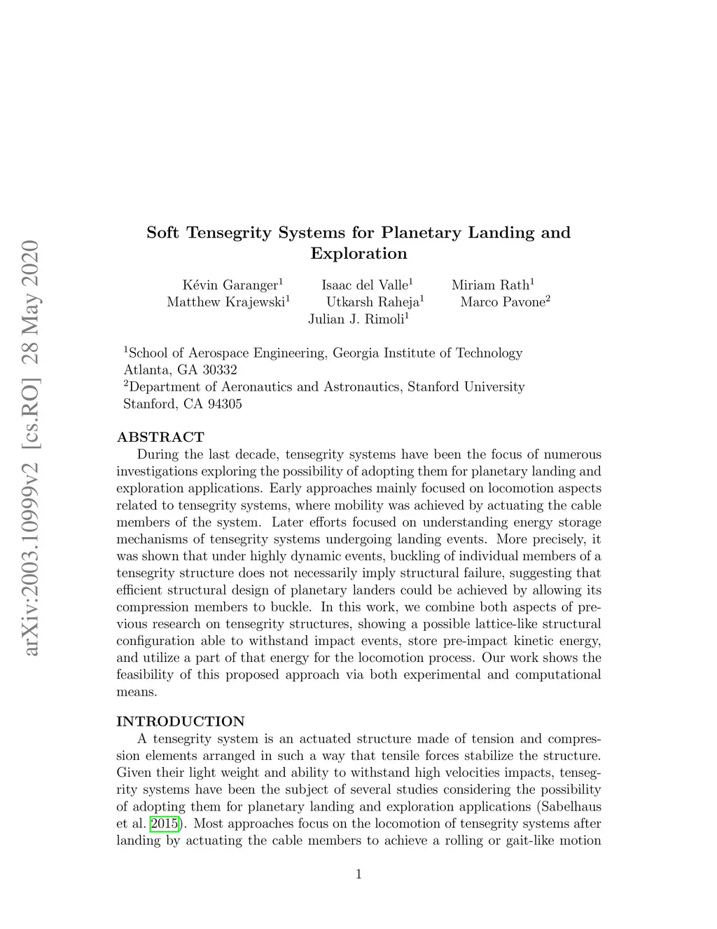 Soft Tensegrity Systems for Planetary Landing and Exploration