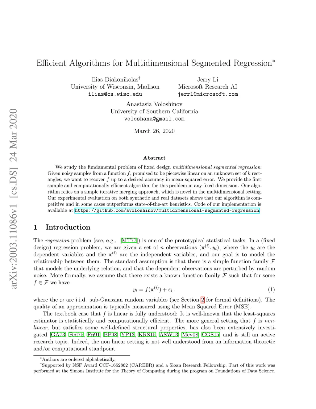 We study the fundamental problem of fixed design {\em multidimensional segmented regression}: Given noisy samples from a function , promised to be piecewise linear on an unknown set of rectangles, we want to recover up to a desired accuracy in mean-squared error. We provide the first sample and computationally efficient algorithm for this problem in any fixed dimension. Our algorithm relies on a simple iterative merging approach, which is novel in the multidimensional setting. Our experimental evaluation on both synthetic and real datasets shows that our algorithm is competitive and in some cases outperforms state-of-the-art heuristics. Code of our implementation is available at \url{https://github.com/avoloshinov/multidimensional-segmented-regression}.