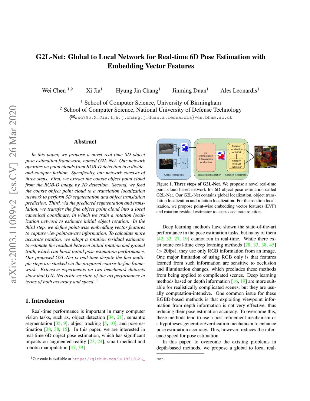 G2L-Net: Global to Local Network for Real-time 6D Pose Estimation with