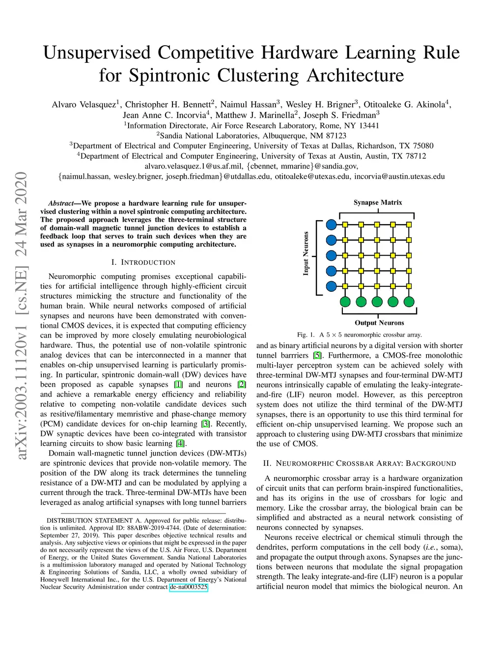Unsupervised Competitive Hardware Learning Rule for Spintronic