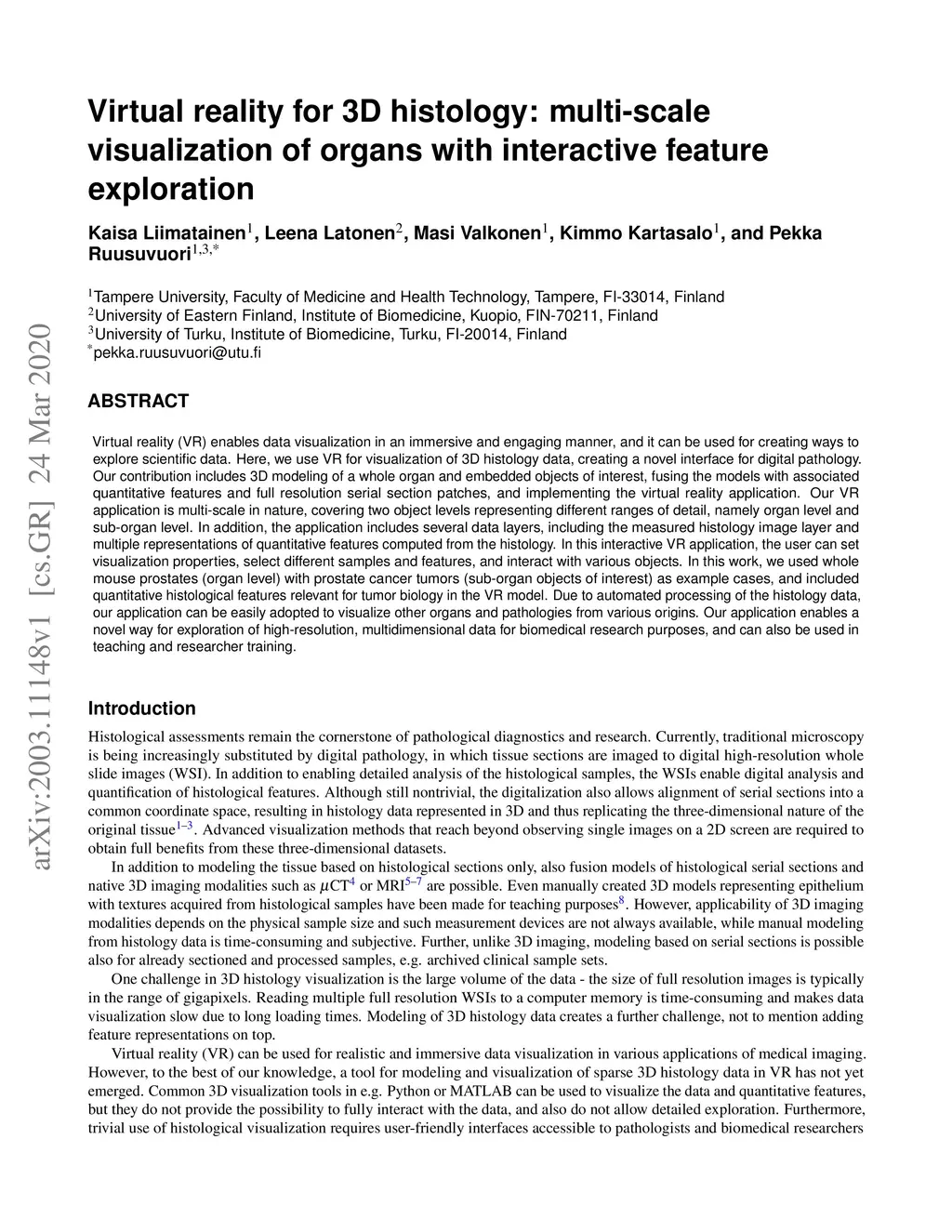 Virtual reality for 3D histology: multi-scale visualization of organs
