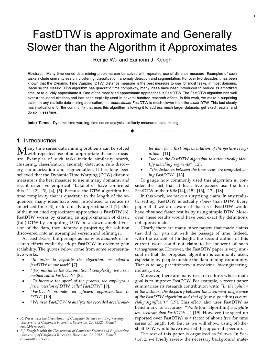 Many time series data mining problems can be solved with repeated use of distance measure. Examples of such tasks include similarity search, clustering, classification, anomaly detection and segmentation. For over two decades it has been known that the Dynamic Time Warping (DTW) distance measure is the best measure to use for most tasks, in most domains. Because the classic DTW algorithm has quadratic time complexity, many ideas have been introduced to reduce its amortized time, or to quickly approximate it. One of the most cited approximate approaches is FastDTW. The FastDTW algorithm has well over a thousand citations and has been explicitly used in several hundred research efforts. In this work, we make a surprising claim. In any realistic data mining application, the approximate FastDTW is much slower than the exact DTW. This fact clearly has implications for the community that uses this algorithm: allowing it to address much larger datasets, get exact results, and do so in less time.
