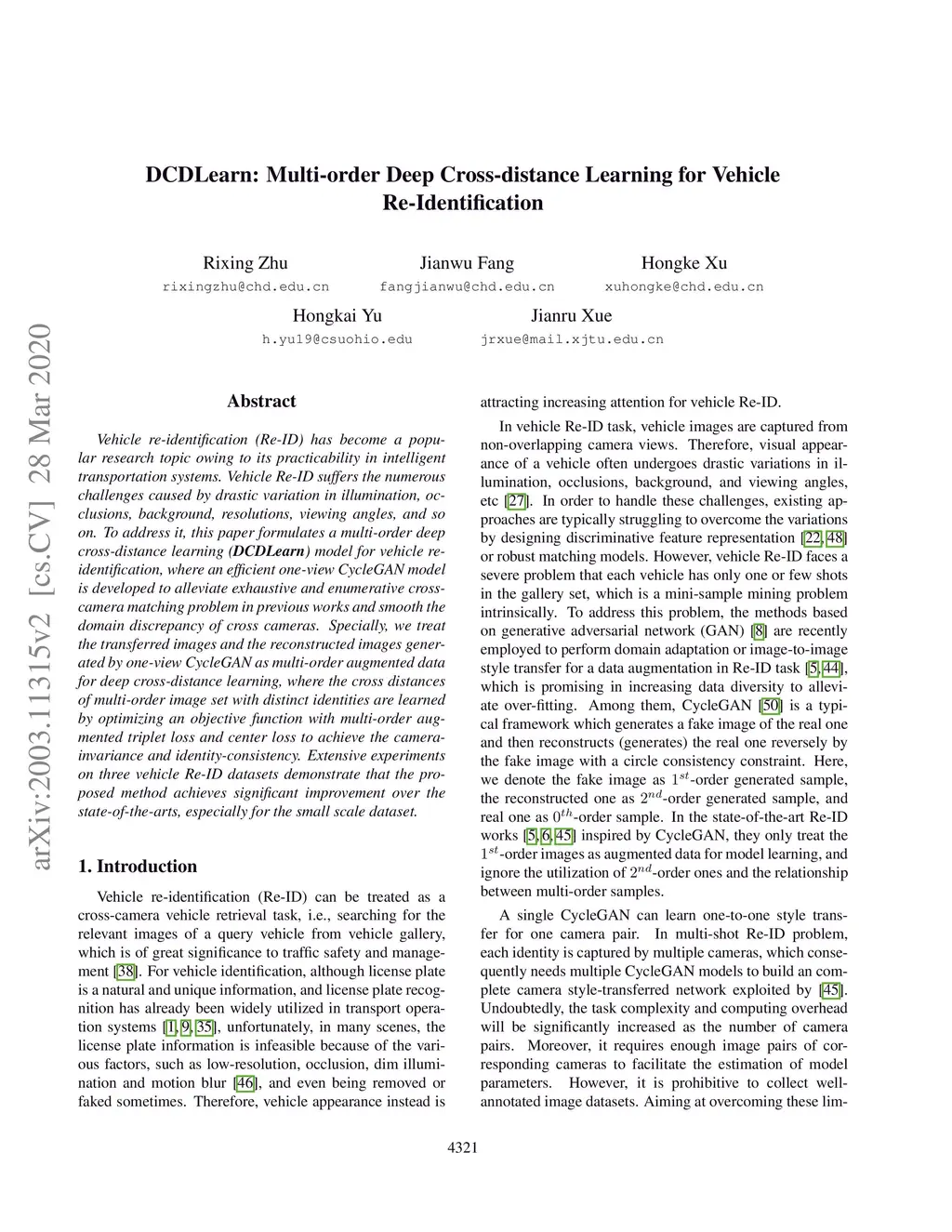 DCDLearn: Multi-order Deep Cross-distance Learning for Vehicle