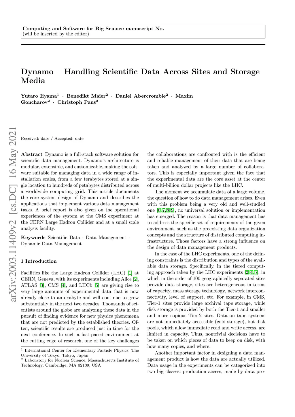 Dynamo -- Handling Scientific Data Across Sites and Storage Media