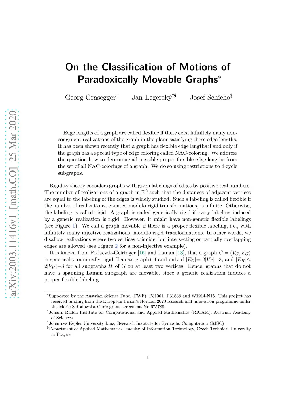 On the Classification of Motions of Paradoxically Movable Graphs