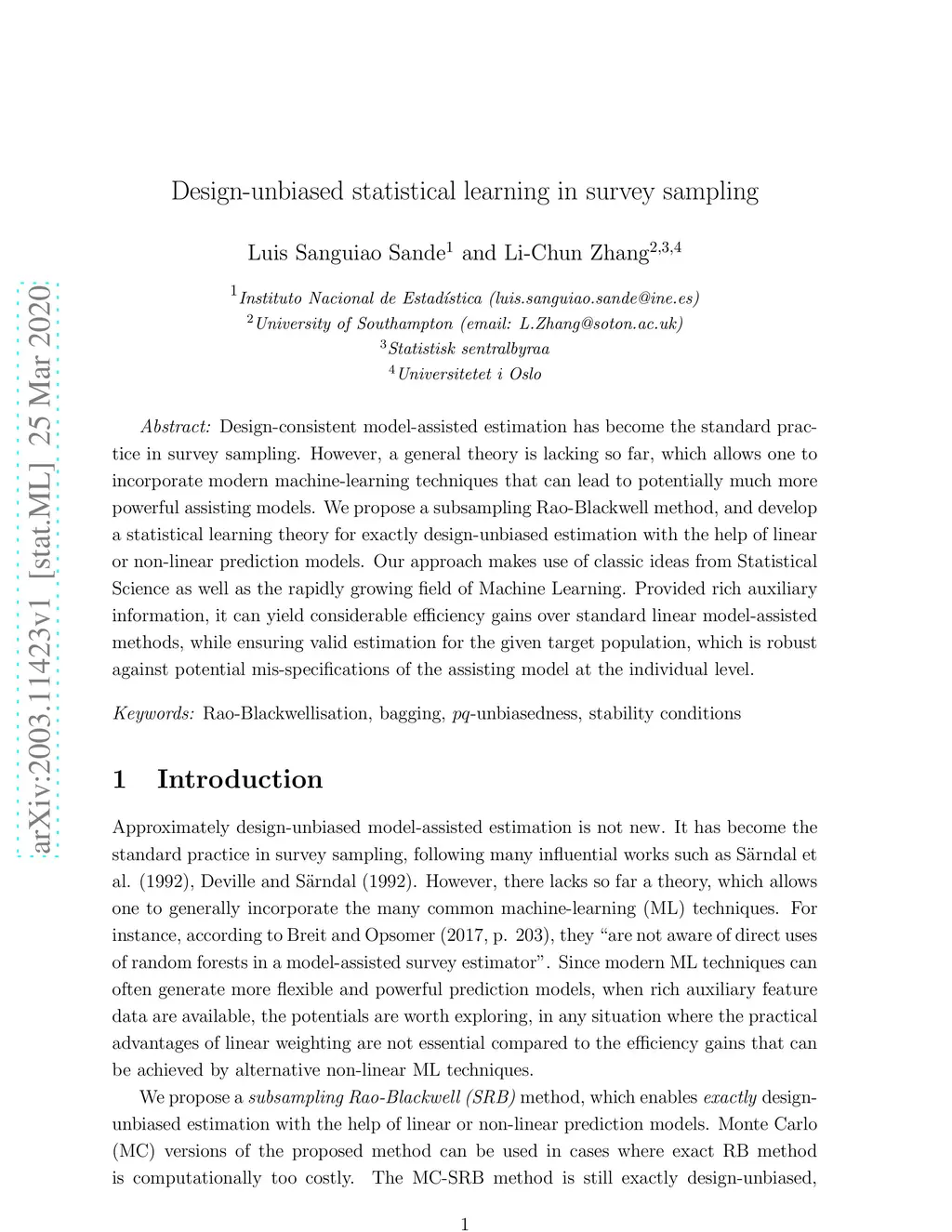 Design-consistent model-assisted estimation has become the standard practice in survey sampling. However, a general theory is lacking so far, which allows one to incorporate modern machine-learning techniques that can lead to potentially much more powerful assisting models. We propose a subsampling Rao-Blackwell method, and develop a statistical learning theory for exactly design-unbiased estimation with the help of linear or non-linear prediction models. Our approach makes use of classic ideas from Statistical Science as well as the rapidly growing field of Machine Learning. Provided rich auxiliary information, it can yield considerable efficiency gains over standard linear model-assisted methods, while ensuring valid estimation for the given target population, which is robust against potential mis-specifications of the assisting model at the individual level.