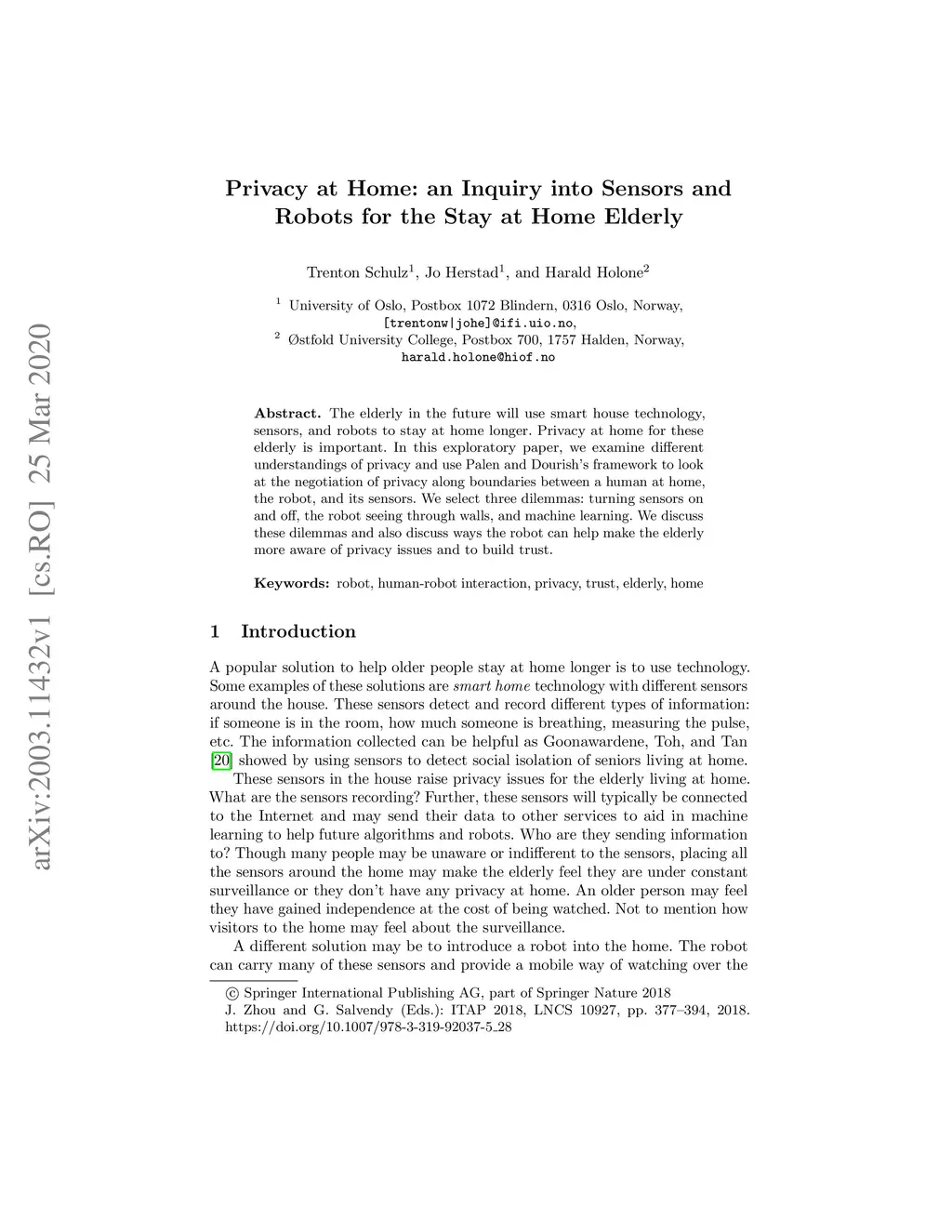 Privacy at Home: an Inquiry into Sensors and Robots for the Stay at Home