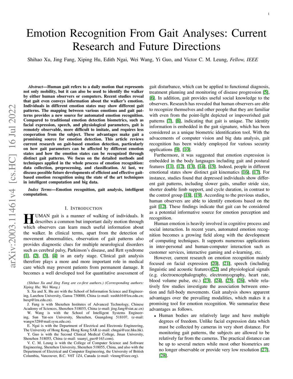 Emotion Recognition From Gait Analyses: Current Research and Future