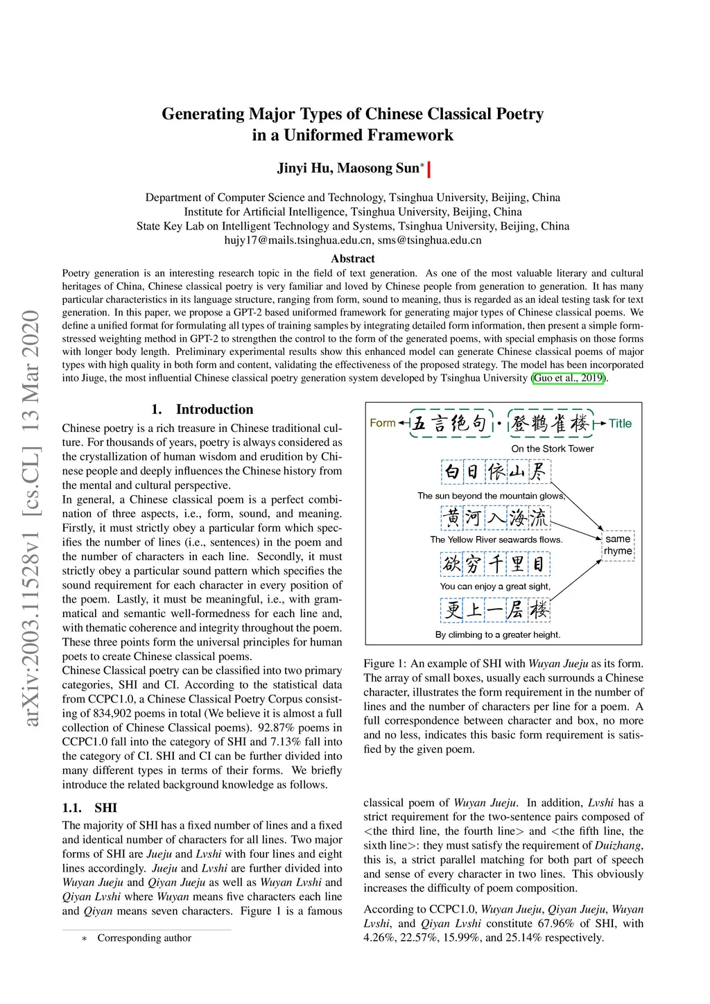 Generating Major Types of Chinese Classical Poetry in a Uniformed