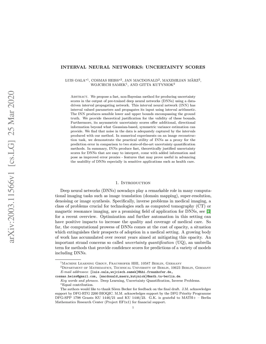 We propose a fast, non-Bayesian method for producing uncertainty scores in the output of pre-trained deep neural networks (DNNs) using a data-driven interval propagating network. This interval neural network (INN) has interval valued parameters and propagates its input using interval arithmetic. The INN produces sensible lower and upper bounds encompassing the ground truth. We provide theoretical justification for the validity of these bounds. Furthermore, its asymmetric uncertainty scores offer additional, directional information beyond what Gaussian-based, symmetric variance estimation can provide. We find that noise in the data is adequately captured by the intervals produced with our method. In numerical experiments on an image reconstruction task, we demonstrate the practical utility of INNs as a proxy for the prediction error in comparison to two state-of-the-art uncertainty quantification methods. In summary, INNs produce fast, theoretically justified uncertainty scores for DNNs that are easy to interpret, come with added information and pose as improved error proxies - features that may prove useful in advancing the usability of DNNs especially in sensitive applications such as health care.