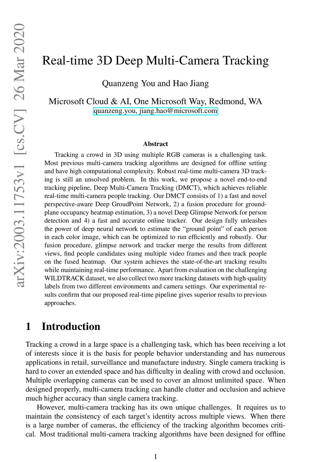 Tracking a crowd in 3D using multiple RGB cameras is a challenging task. Most previous multi-camera tracking algorithms are designed for offline setting and have high computational complexity. Robust real-time multi-camera 3D tracking is still an unsolved problem. In this work, we propose a novel end-to-end tracking pipeline, Deep Multi-Camera Tracking (DMCT), which achieves reliable real-time multi-camera people tracking. Our DMCT consists of 1) a fast and novel perspective-aware Deep GroudPoint Network, 2) a fusion procedure for ground-plane occupancy heatmap estimation, 3) a novel Deep Glimpse Network for person detection and 4) a fast and accurate online tracker. Our design fully unleashes the power of deep neural network to estimate the "ground point" of each person in each color image, which can be optimized to run efficiently and robustly. Our fusion procedure, glimpse network and tracker merge the results from different views, find people candidates using multiple video frames and then track people on the fused heatmap. Our system achieves the state-of-the-art tracking results while maintaining real-time performance. Apart from evaluation on the challenging WILDTRACK dataset, we also collect two more tracking datasets with high-quality labels from two different environments and camera settings. Our experimental results confirm that our proposed real-time pipeline gives superior results to previous approaches.
