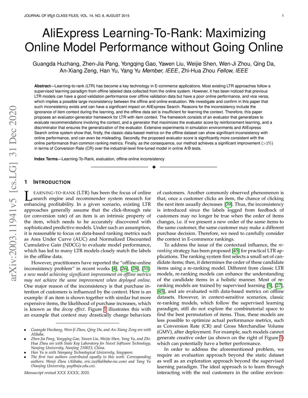Learning-to-rank (LTR) has become a key technology in E-commerce applications. Previous LTR approaches followed the supervised learning paradigm so that learned models should match the labeled data point-wisely or pair-wisely. However, we have noticed that global context information, including the total order of items in the displayed webpage, can play an important role in interactions with the customers. Therefore, to approach the best global ordering, the exploration in a large combinatorial space of items is necessary, which requires evaluating orders that may not appear in the labeled data. In this scenario, we first show that the classical data-based metrics can be inconsistent with online performance, or even misleading. We then propose to learn an evaluator and search the best model guided by the evaluator, which forms the evaluator-generator framework for training the group-wise LTR model. The evaluator is learned from the labeled data, and is enhanced by incorporating the order context information. The generator is trained with the supervision of the evaluator by reinforcement learning to generate the best order in the combinatorial space. Our experiments in one of the world's largest retail platforms disclose that the learned evaluator is a much better indicator than classical data-based metrics. Moreover, our LTR model achieves a significant improvement () from the current industrial-level pair-wise models in terms of both Conversion Rate (CR) and Gross Merchandise Volume (GMV) in online A/B tests.