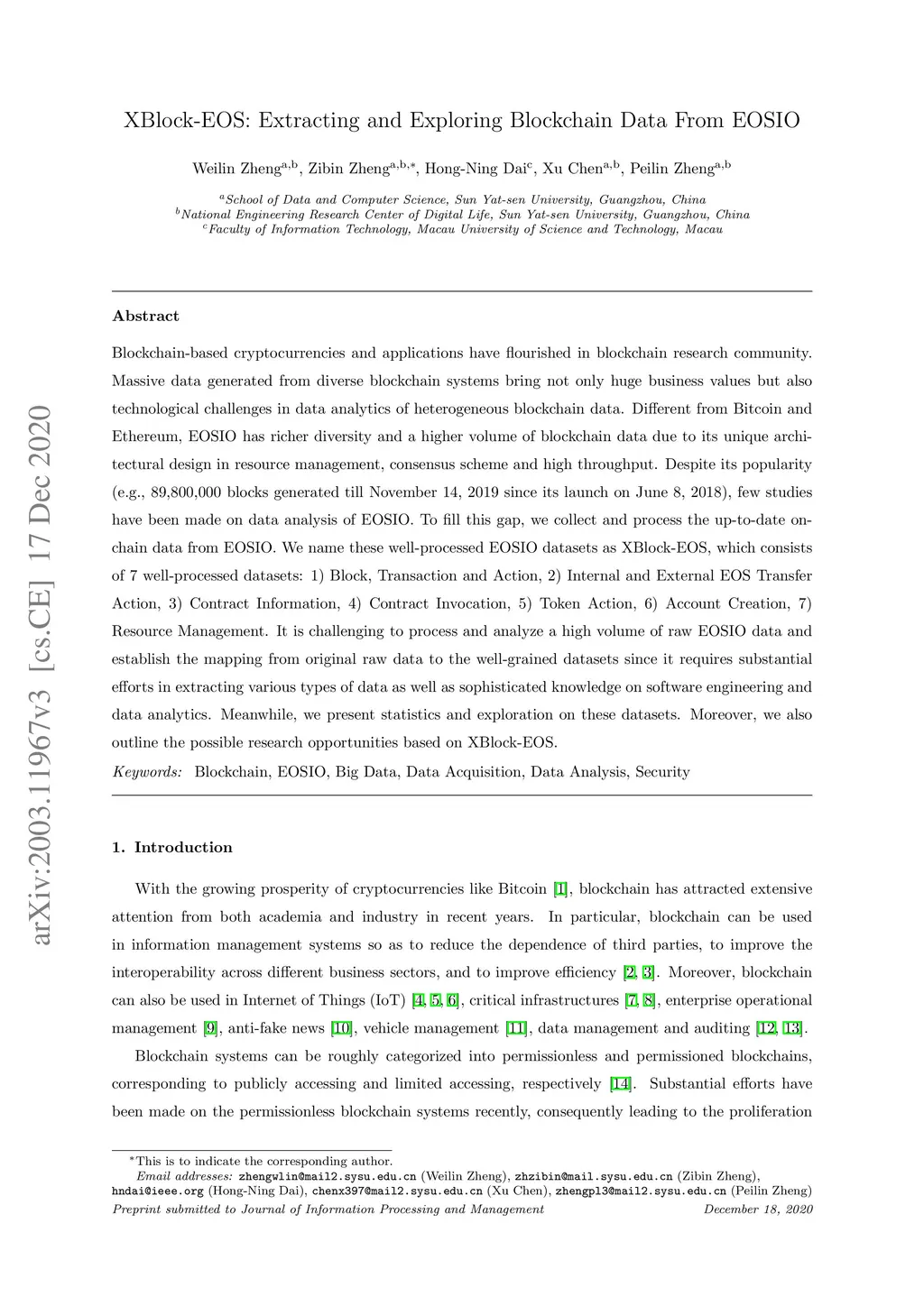 XBlock-EOS: Extracting and Exploring Blockchain Data From EOSIO