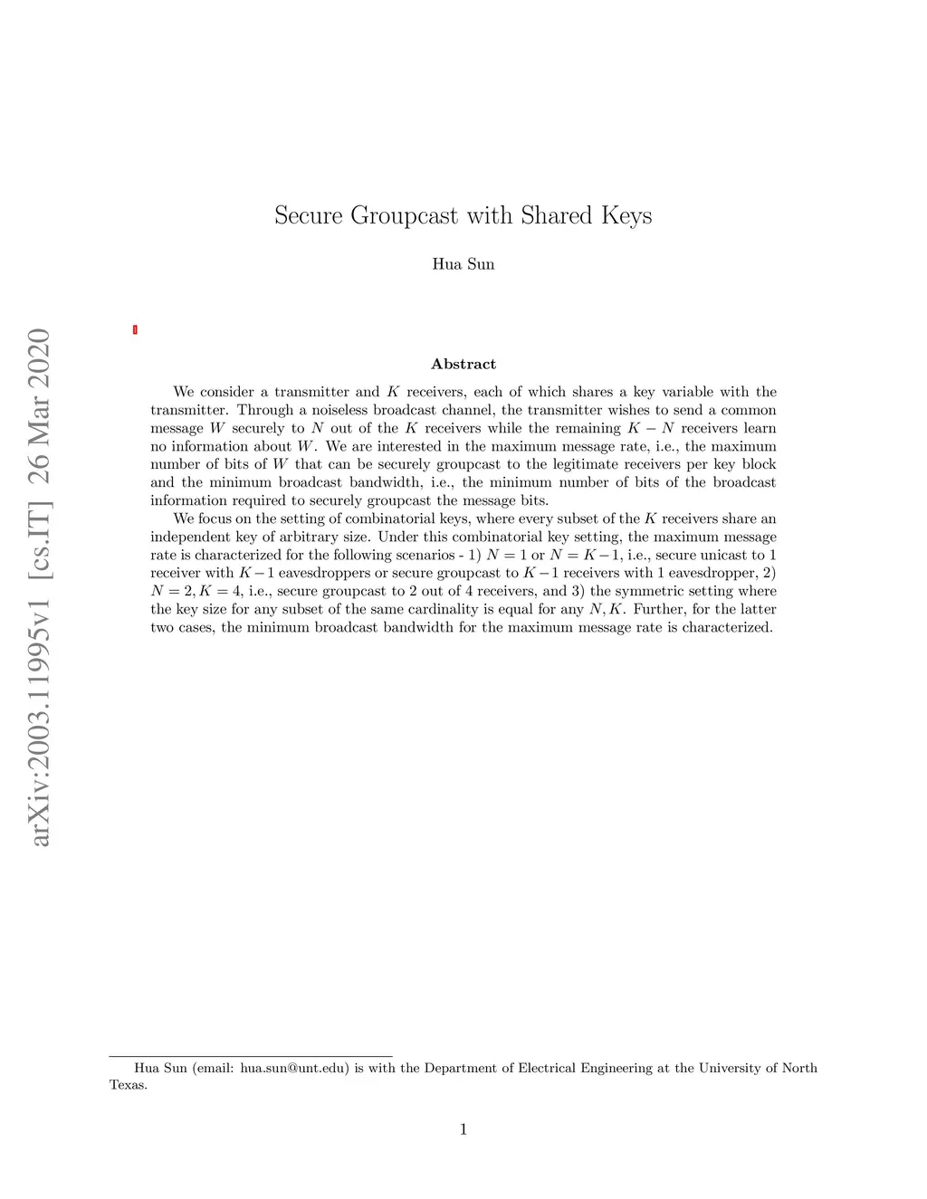 We consider a transmitter and receivers, each of which shares a key variable with the transmitter. Through a noiseless broadcast channel, the transmitter wishes to send a common message securely to out of the receivers while the remaining receivers learn no information about . We are interested in the maximum message rate, i.e., the maximum number of bits of that can be securely groupcast to the legitimate receivers per key block and the minimum broadcast bandwidth, i.e., the minimum number of bits of the broadcast information required to securely groupcast the message bits. We focus on the setting of combinatorial keys, where every subset of the receivers share an independent key of arbitrary size. Under this combinatorial key setting, the maximum message rate is characterized for the following scenarios - 1) or , i.e., secure unicast to 1 receiver with eavesdroppers or secure groupcast to receivers with eavesdropper, 2) , i.e., secure groupcast to out of 4 receivers, and 3) the symmetric setting where the key size for any subset of the same cardinality is equal for any . Further, for the latter two cases, the minimum broadcast bandwidth for the maximum message rate is characterized.