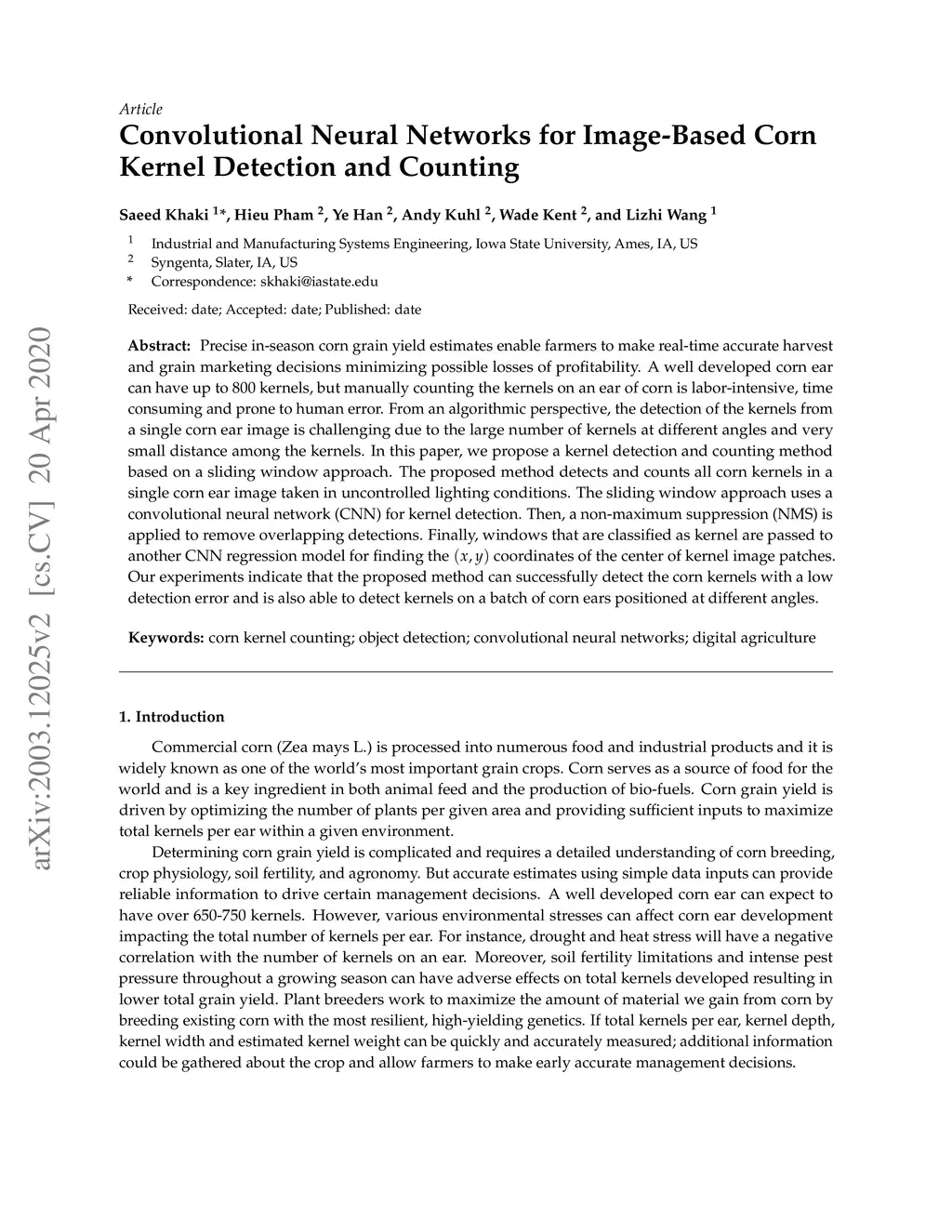 Convolutional Neural Networks for Image-based Corn Kernel Detection and