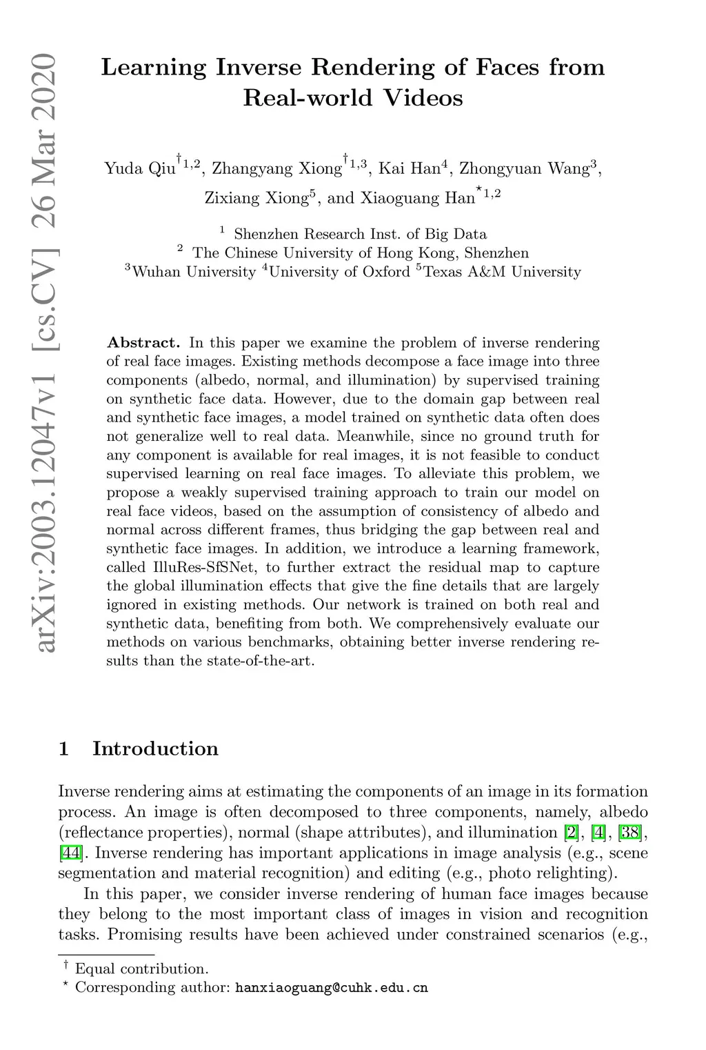 In this paper we examine the problem of inverse rendering of real face images. Existing methods decompose a face image into three components (albedo, normal, and illumination) by supervised training on synthetic face data. However, due to the domain gap between real and synthetic face images, a model trained on synthetic data often does not generalize well to real data. Meanwhile, since no ground truth for any component is available for real images, it is not feasible to conduct supervised learning on real face images. To alleviate this problem, we propose a weakly supervised training approach to train our model on real face videos, based on the assumption of consistency of albedo and normal across different frames, thus bridging the gap between real and synthetic face images. In addition, we introduce a learning framework, called IlluRes-SfSNet, to further extract the residual map to capture the global illumination effects that give the fine details that are largely ignored in existing methods. Our network is trained on both real and synthetic data, benefiting from both. We comprehensively evaluate our methods on various benchmarks, obtaining better inverse rendering results than the state-of-the-art.