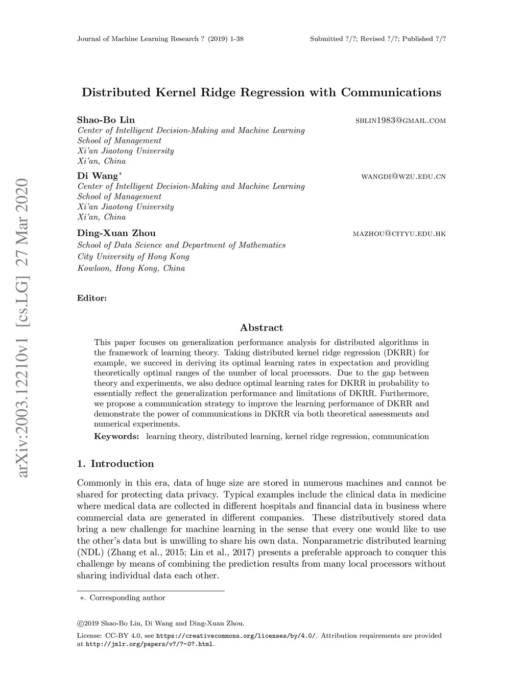 This paper focuses on generalization performance analysis for distributed algorithms in the framework of learning theory. Taking distributed kernel ridge regression (DKRR) for example, we succeed in deriving its optimal learning rates in expectation and providing theoretically optimal ranges of the number of local processors. Due to the gap between theory and experiments, we also deduce optimal learning rates for DKRR in probability to essentially reflect the generalization performance and limitations of DKRR. Furthermore, we propose a communication strategy to improve the learning performance of DKRR and demonstrate the power of communications in DKRR via both theoretical assessments and numerical experiments.