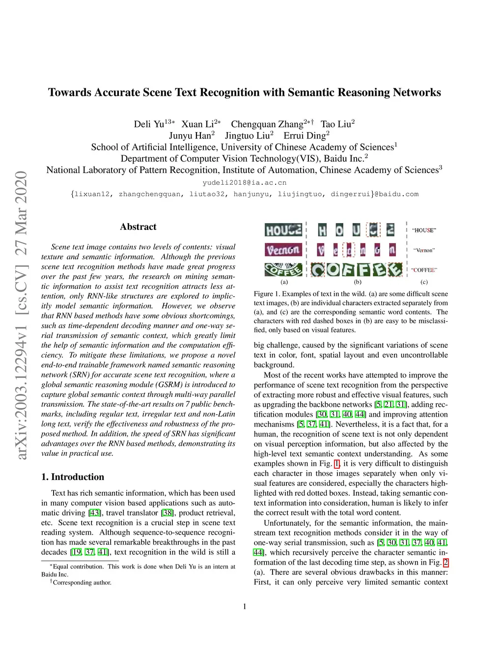 Towards Accurate Scene Text Recognition with Semantic Reasoning Networks