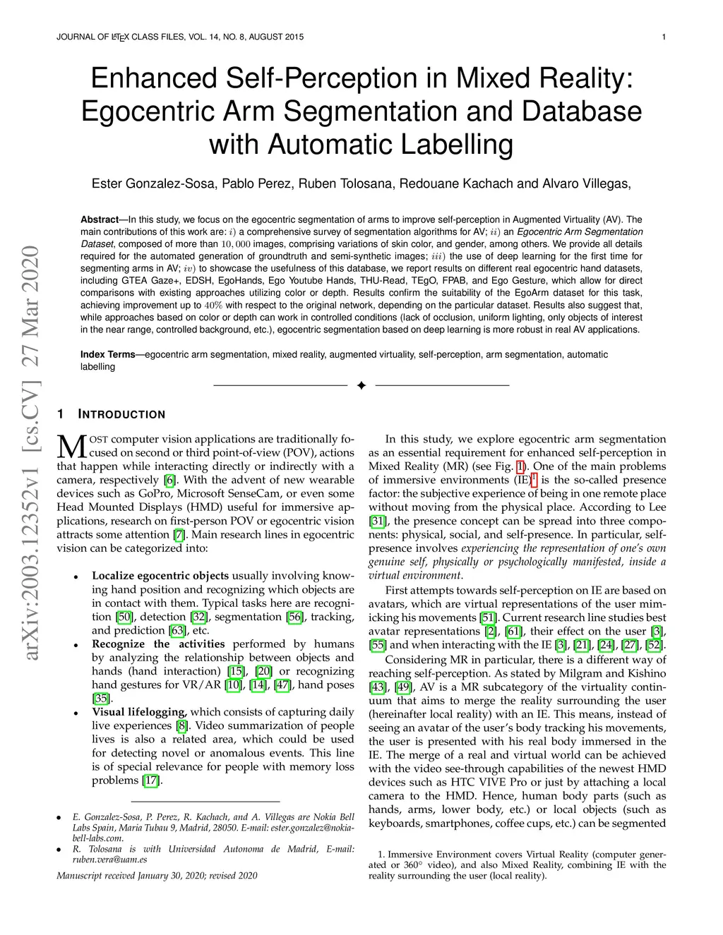 Enhanced Self-Perception in Mixed Reality: Egocentric Arm Segmentation