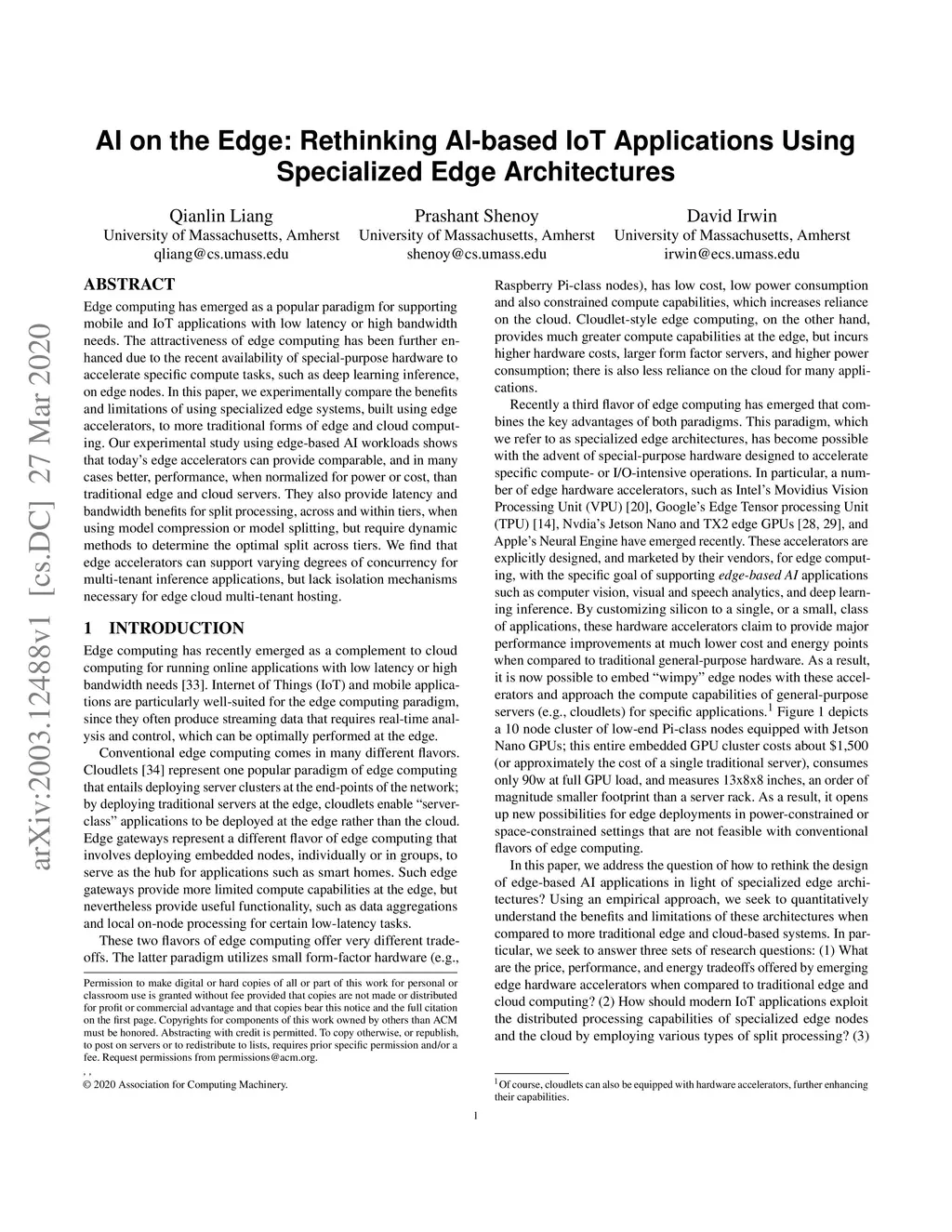 AI on the Edge: Rethinking AI-based IoT Applications Using Specialized