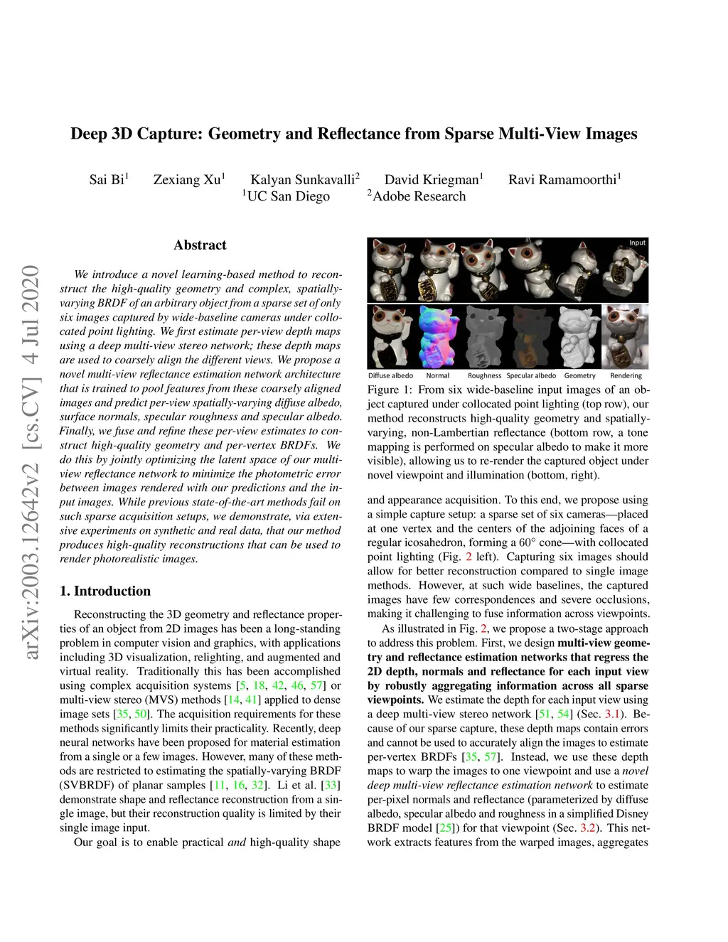 Deep 3D Capture: Geometry and Reflectance from Sparse Multi-View Images
