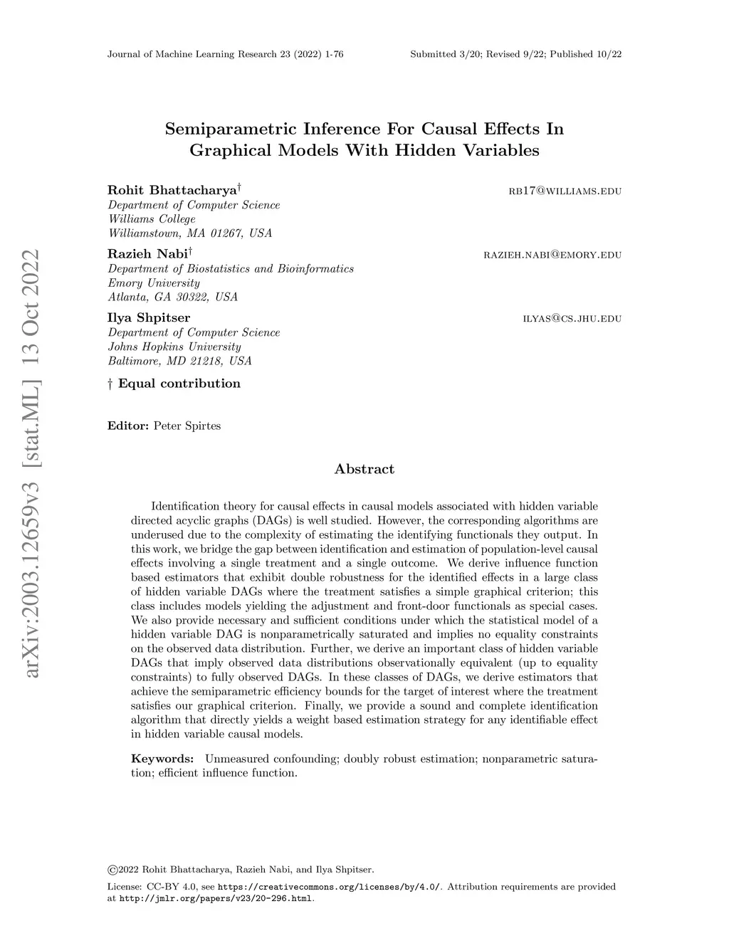 Semiparametric Inference For Causal Effects In Graphical Models With