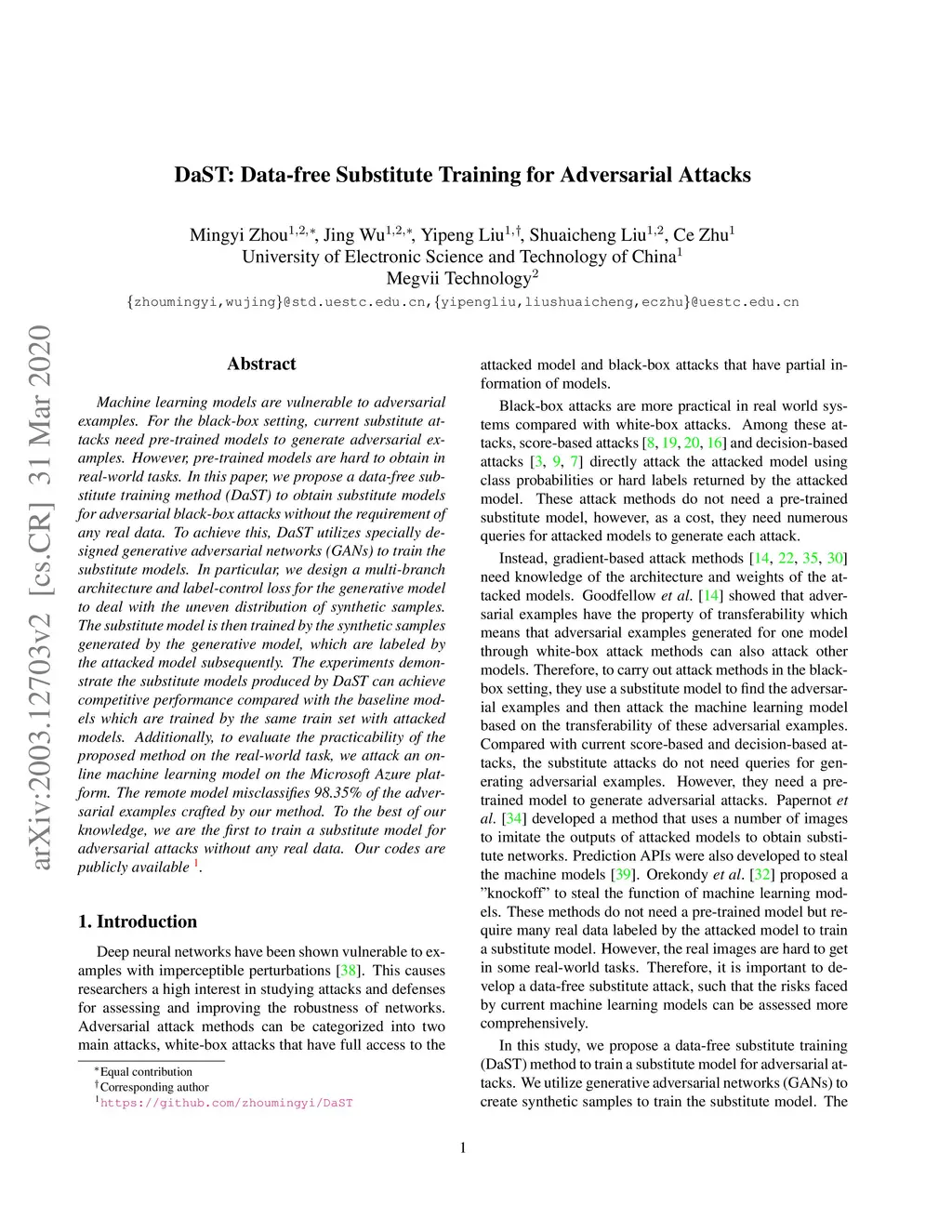 DaST: Data-free Substitute Training for Adversarial Attacks