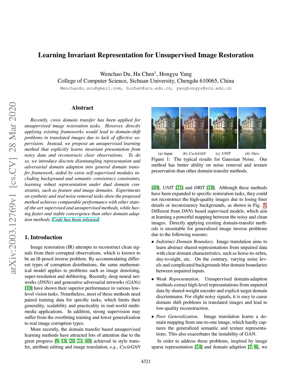 Learning Invariant Representation for Unsupervised Image Restoration