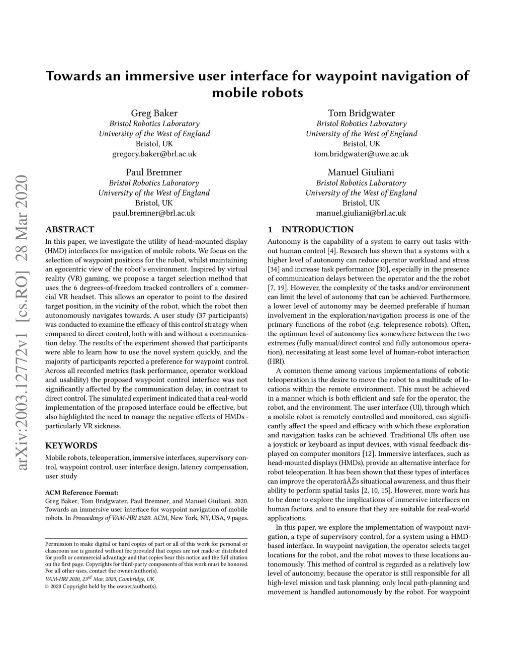 Towards an immersive user interface for waypoint navigation of a mobile
