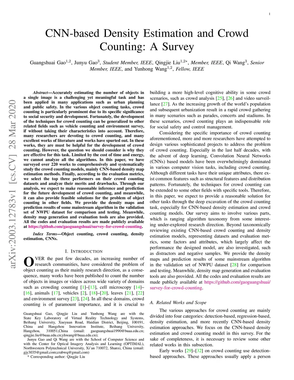 CNN-based Density Estimation and Crowd Counting: A Survey