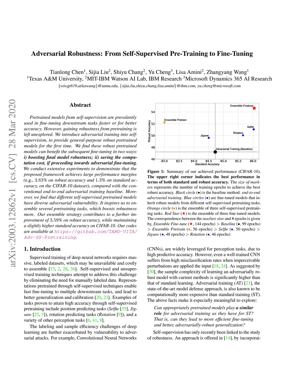 Adversarial Robustness: From Self-Supervised Pre-Training to Fine-Tuning