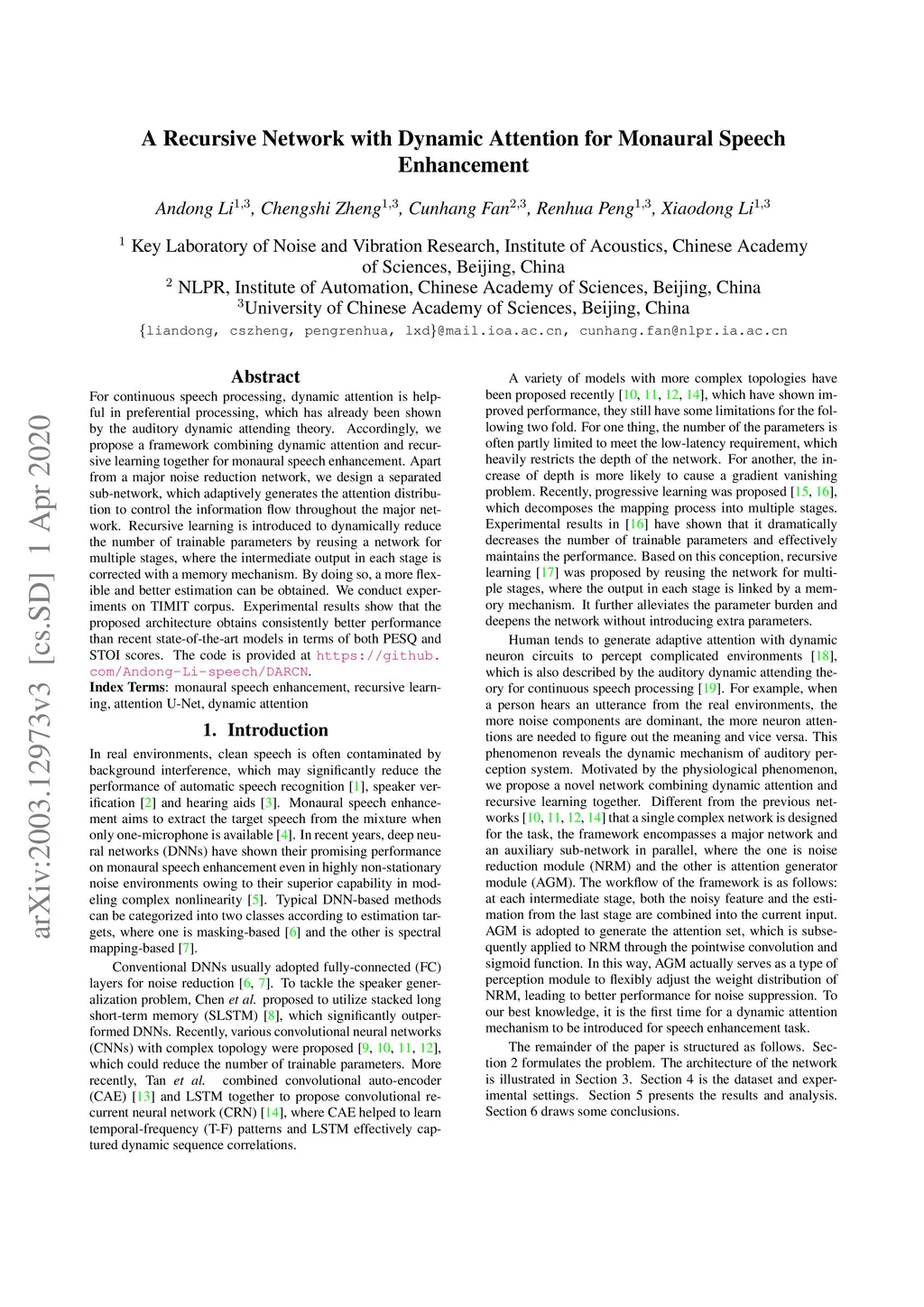 A Recursive Network with Dynamic Attention for Monaural Speech