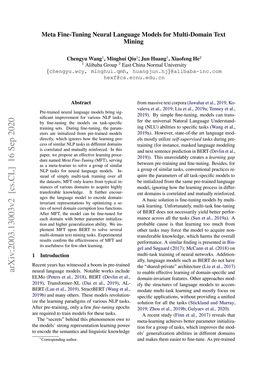 Meta Fine-Tuning Neural Language Models for Multi-Domain Text Mining