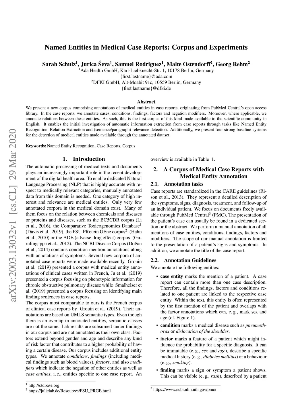 Named Entities in Medical Case Reports: Corpus and Experiments